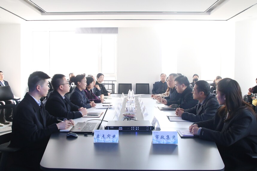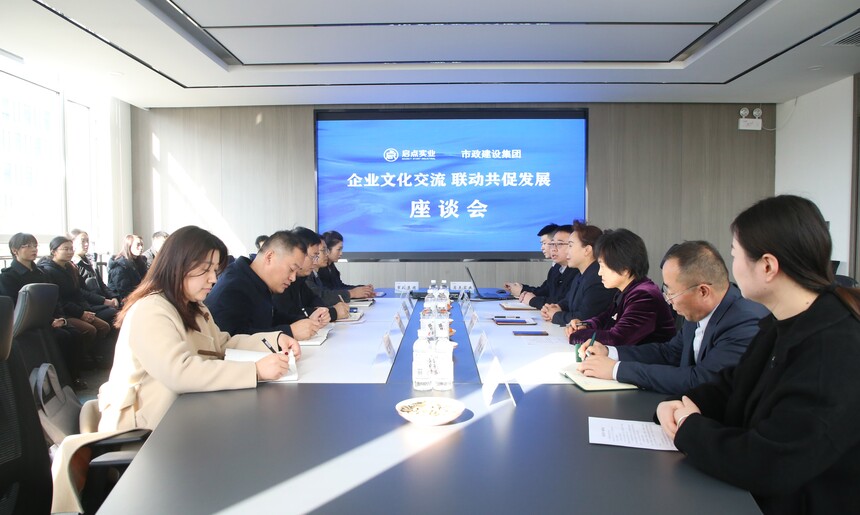 11月26日,咸阳市政建设集团总经理辛勇一行40余人到启点实业进行座谈交流。公司执行董事、总经理曹洁主持会议,相关部门负责同志参加会议。